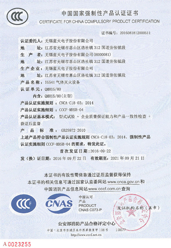 During the specified period of time, a certain concentration of mixed gas is sprayed into the protected area, and it is evenly filled in the protected area. IG541 gas fire extinguishing equipment uses total flooding way to extinguish the fire.
